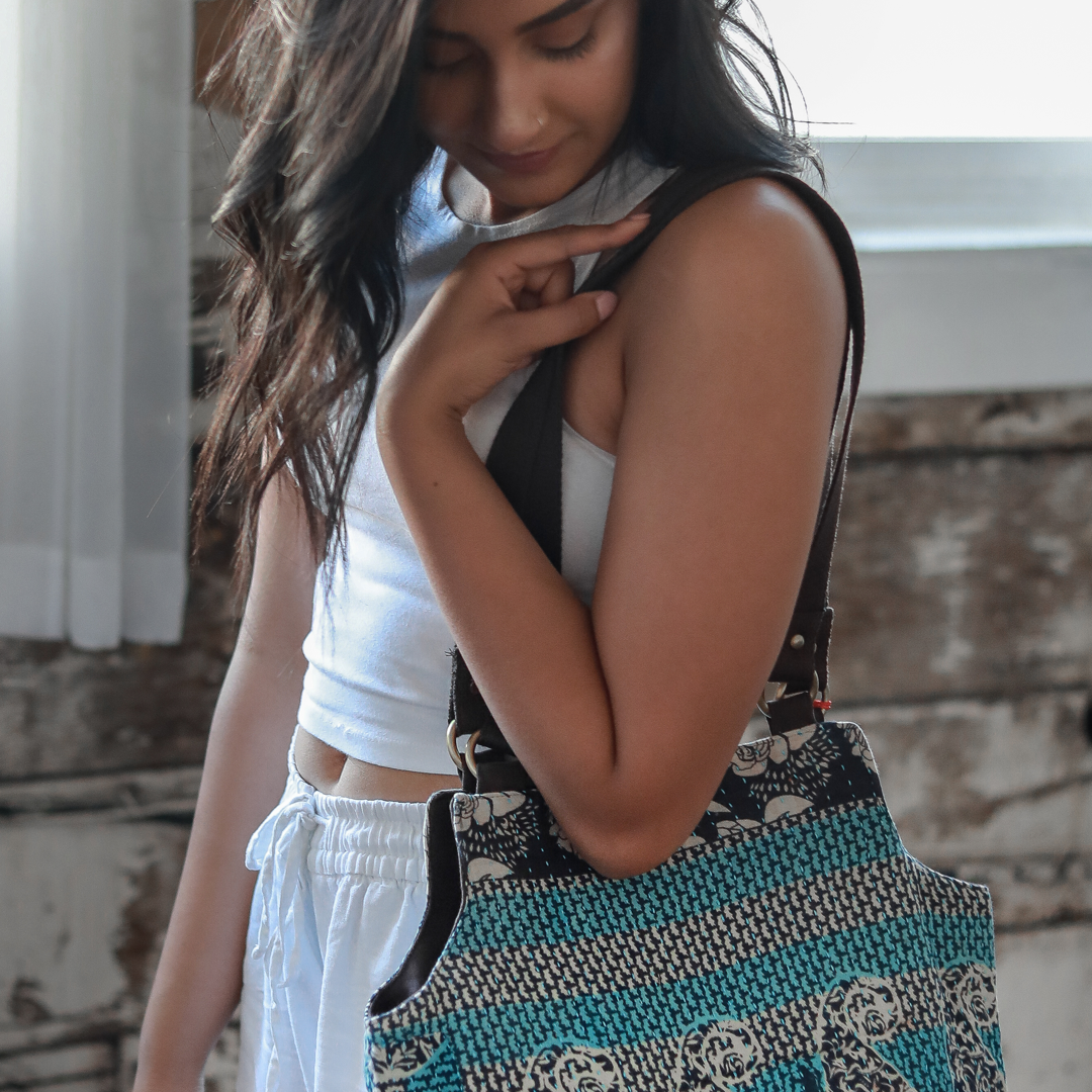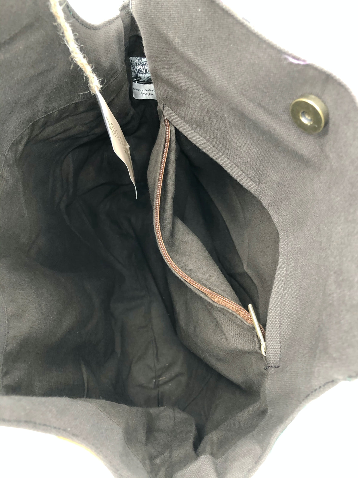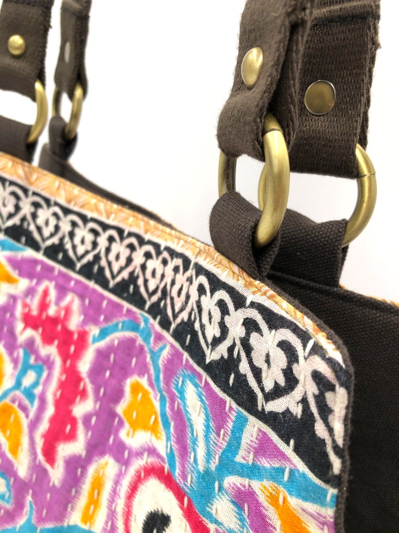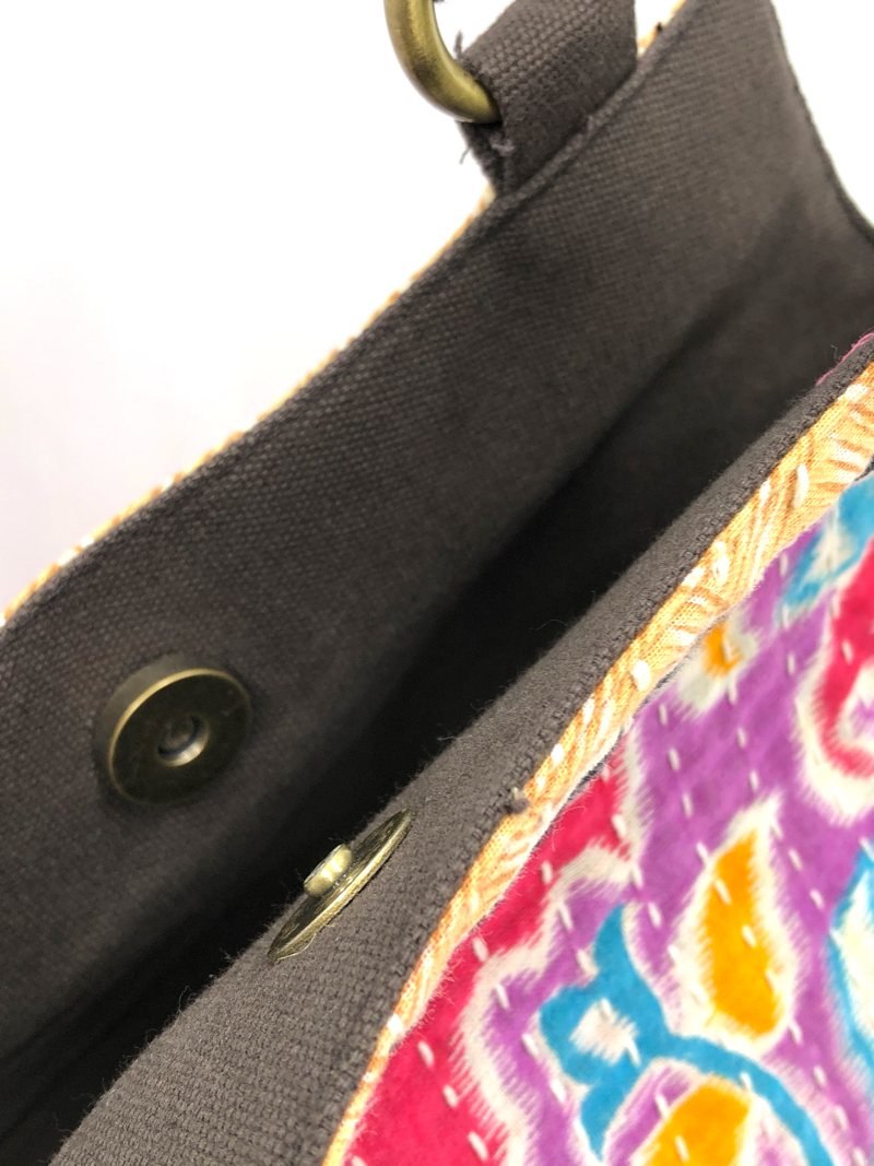 Bon Boho im modernen Bohemian-style. Mit Sari-Bari-Kantha-Ziernähten überzogen, wirst du damit sicher auffallen. Diese Tasche hat eine innere Reißverschlusstasche und einen Magnetknopfverschluss, um deine Wertsachen sicher zu verwahren.