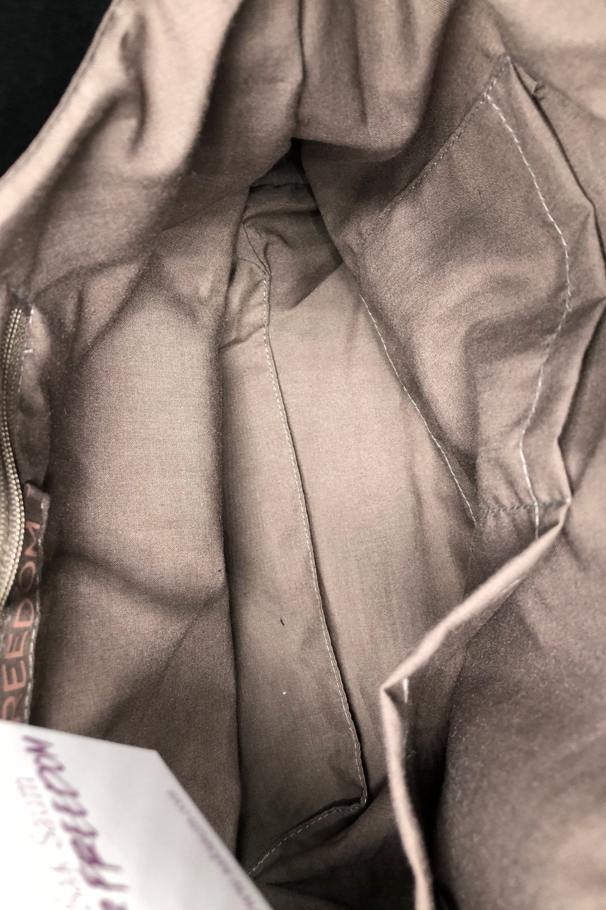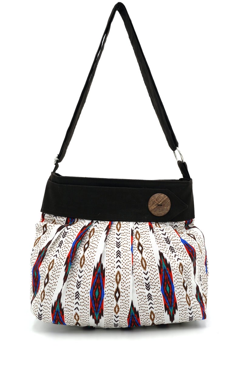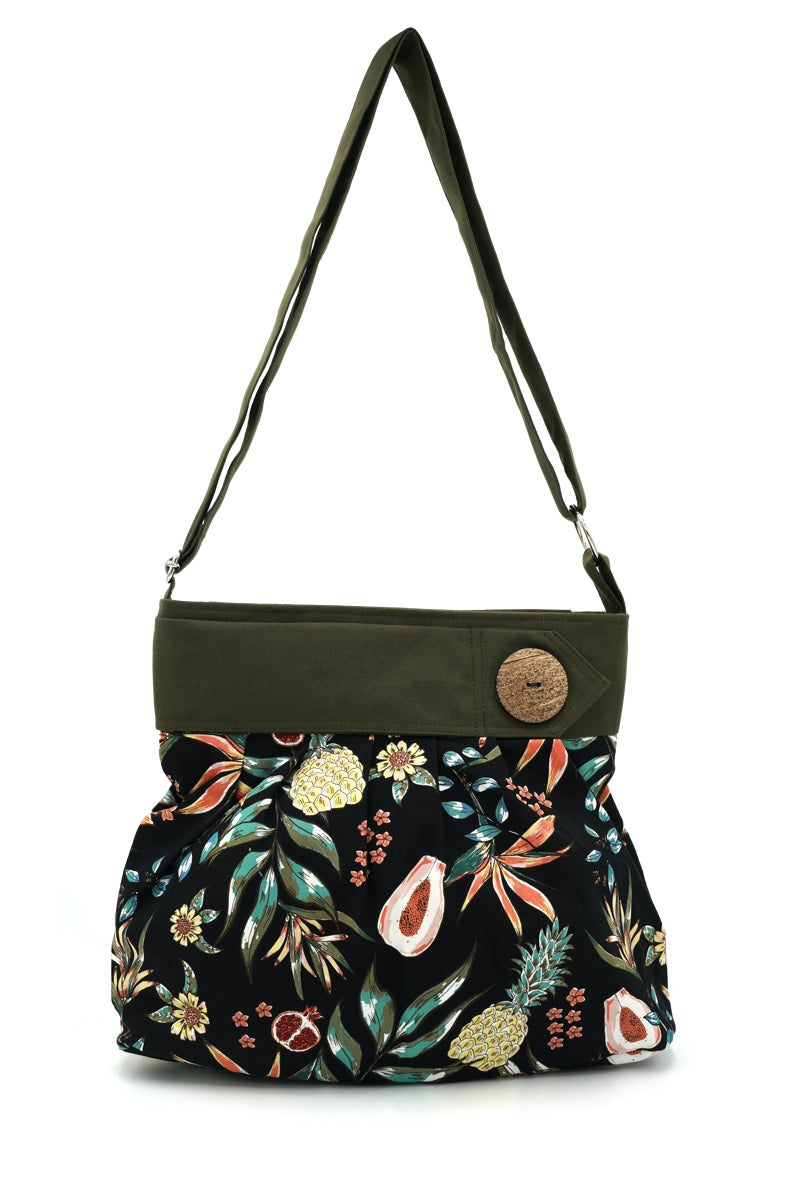 Em ist schick und zeitlos. Der Kokosnussknopf, ein landestypisches Material dort in Kambodscha, macht die Tasche besonders. Außerdem werden fast alle Kokosnussakzente von Herrn Bang hergestellt. Mit seiner Arbeit für Sak Saum kann er somit seine ganze Familie finanziell versorgen.