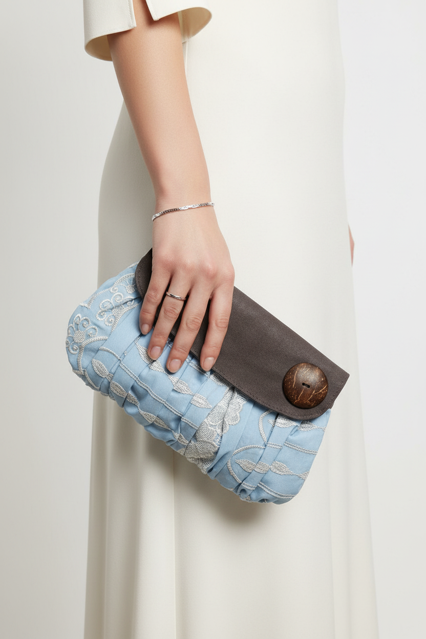 Exklusiv! Abi Clutch von Fashion Designer Abi Ferrin, USA. Abi hat ihr eigenes Mode Label und ist in einer aktiven Partnerschaft mit Sak Saum Kambodscha. Dieser fesche Clutch ist von ihr selbst entworfen, hergestellt von den jungen Frauen in Sak Saum. Nicht verpassen!! Clutch mit wunderschöner Spitze.