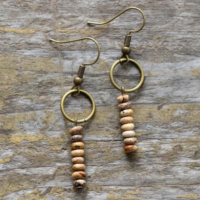 Diese wunderschönen Naturstein-Ohrringe sind handgefertigt, aus hochwertigen Picture-Jasper-Edelsteinen.